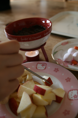 ミルクチョコレートの残りで チョコレートフォンデュを。